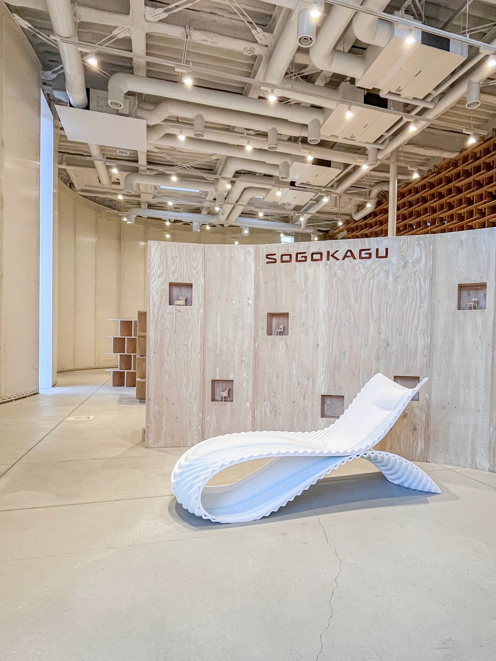 また、国内の業務用家具ブランドとしてはいちはやく、家具の原寸大出力が可能な大型ペレット式3Dプリンター「EXF-12」を導入。従来の家具製造技術と3Dプリント技術を融合させた、新たな製造モデルの確立を目指しています。さらに、3Dプリンターならではの複雑な構造や有機的なデザイン、量産が困難な一点物のアートピースの製作にも注力しています。