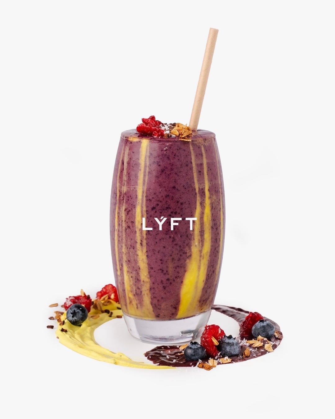 【アサイーボウルを手軽に】をコンセプトに考案したLÝFTプロテイン入りの渋谷限定スムージーです。