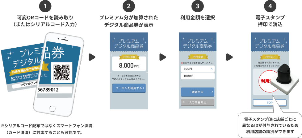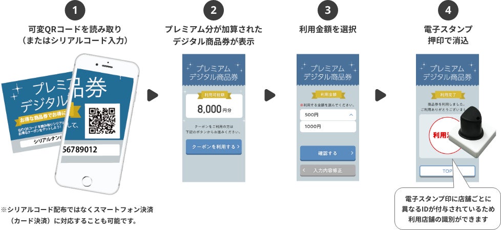 ・デジタル商品券購入者に、金額に応じた専用のシリアルカードを配布