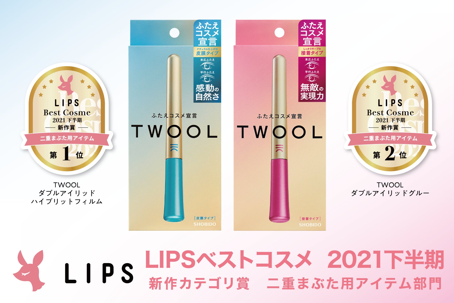 化粧雑貨、化粧品、服飾雑貨、及びキャラクター雑貨等の企画・製造・販売、コンタクトレンズの企画・販売を行う粧美堂株式会社(本社:東京都港区、代表取締役社長:寺田正秀、以下粧美堂)が販売する新次元のふたえコスメ「TWOOL(トゥール)」が、国内最大級の美容プラットフォーム 『LIPS』に投稿されたリアルなクチコミに基づきもっとも注目されたアイテムを選出するコスメアワード「LIPSベストコスメ 2021下半期 新作賞」の二重まぶた用アイテム部門で1位、2位を獲得しました。