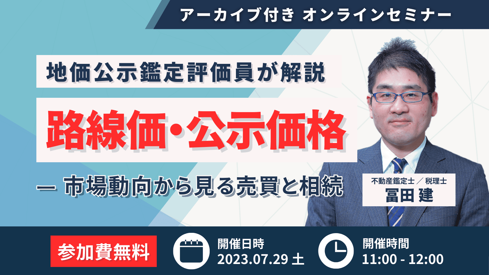 【無料セミナー】7月29日開催 不動産鑑定士が解説 令和5年 最新路線価&公示地価からみた不動産市場動向と相続税対策