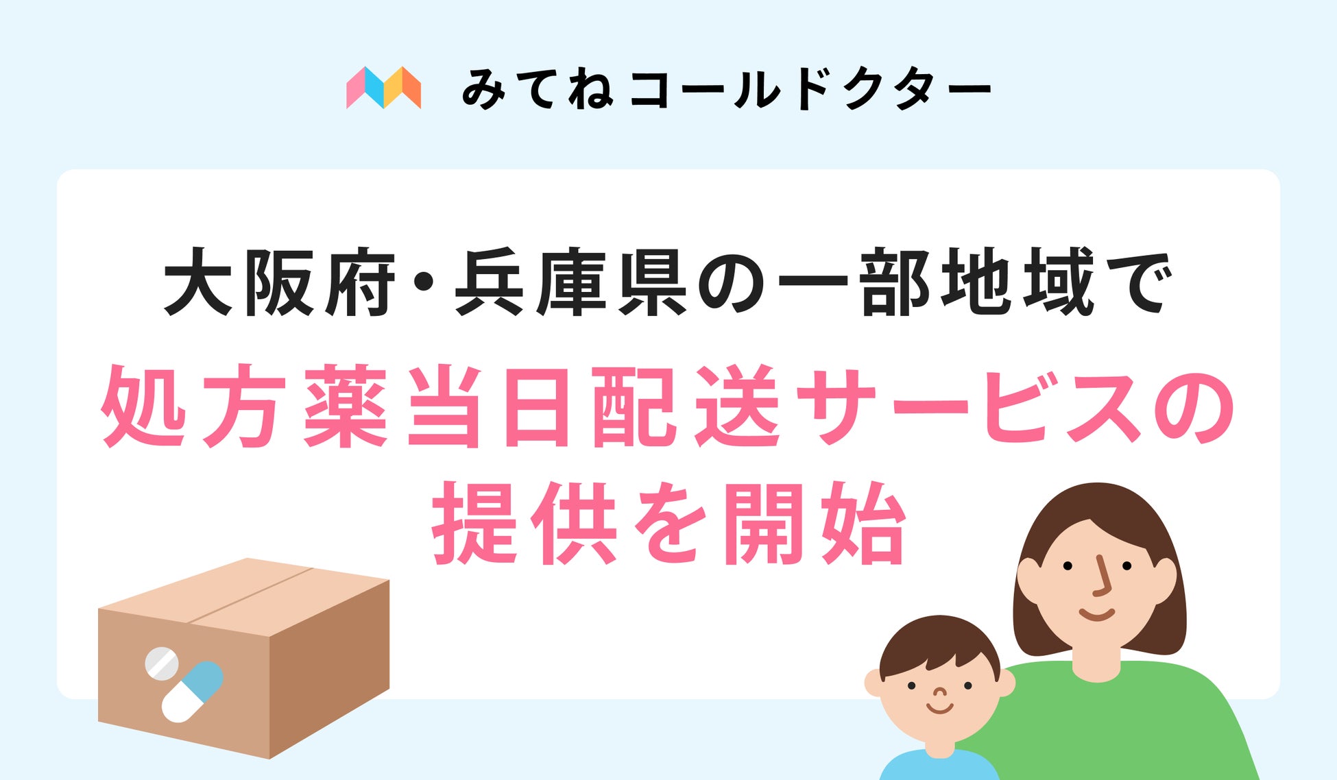 オンライン診療アプリ「みてねコールドクター」、大阪府と兵庫県の一部地域で処方薬当日配送サービスの提供を開始