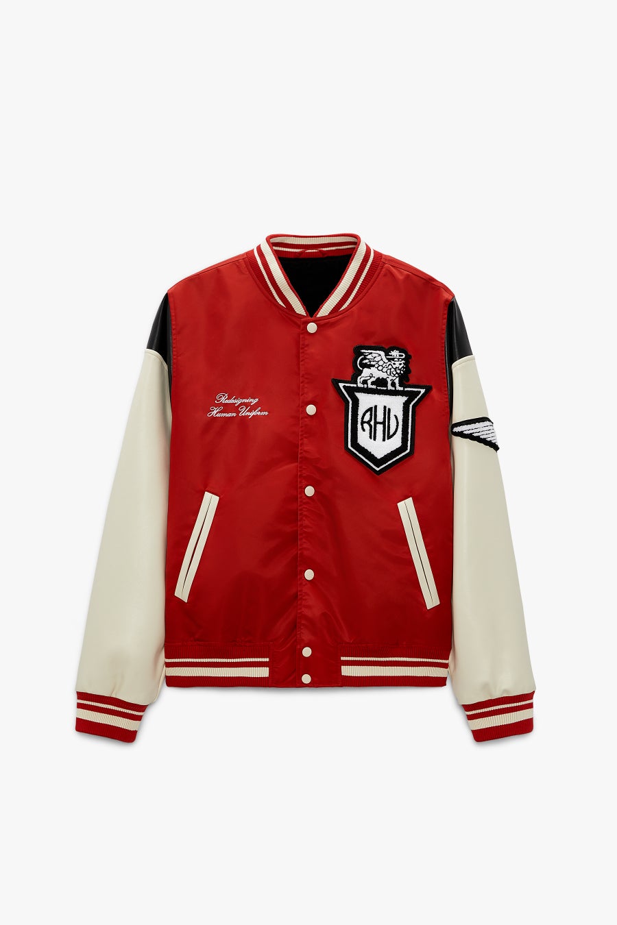 -「RHU」ロゴ入りのオールドスクールなバーシティジャケット