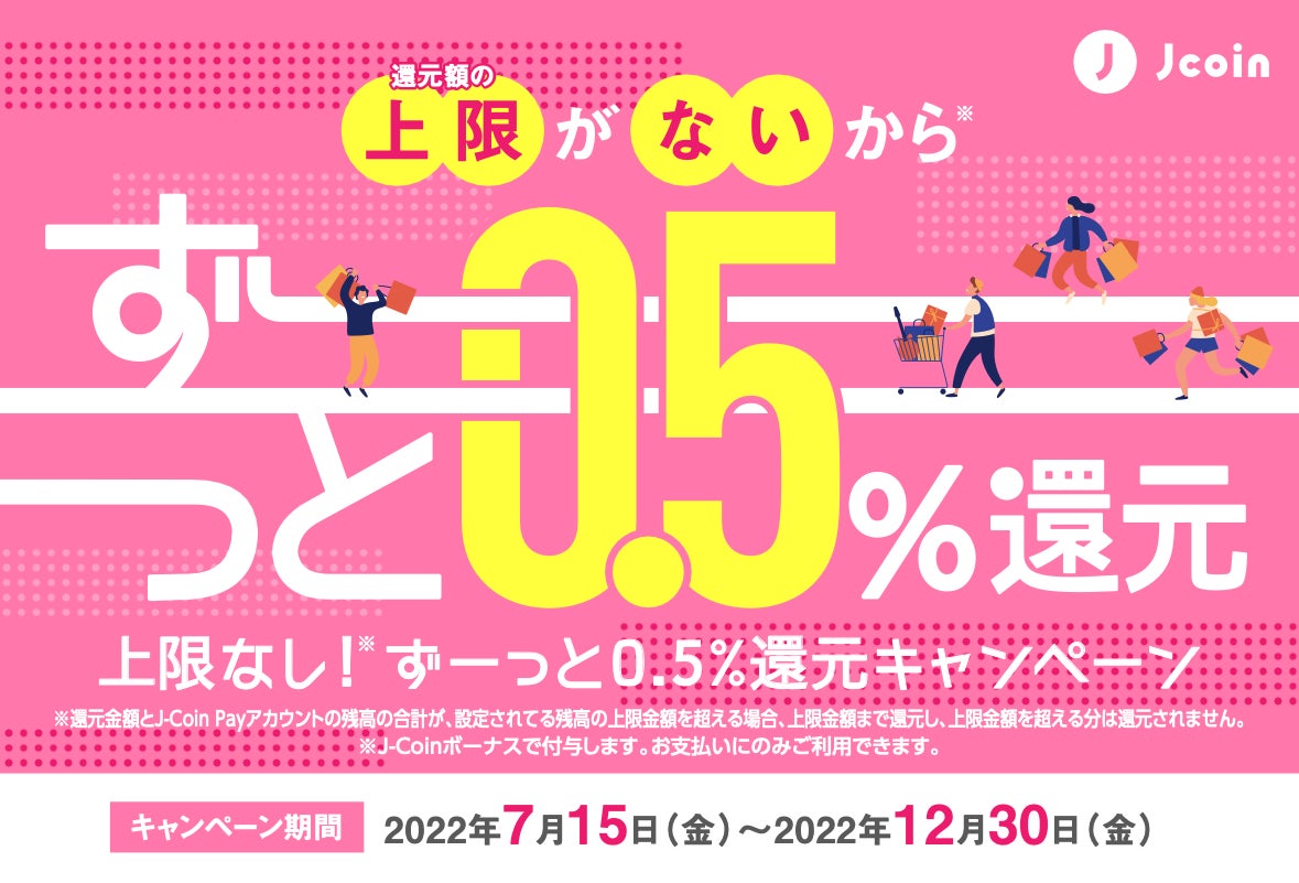 「J-Coin Pay上限なし!ずーっと0.5%還元キャンペーン」開始!