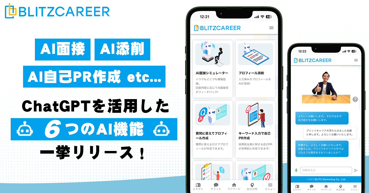 【AI面接/AI添削/AI自己PR作成】ChatGPTを活用した6つのAI機能を一挙リリース!|BLITZCAREER(ブリッツキャリア)