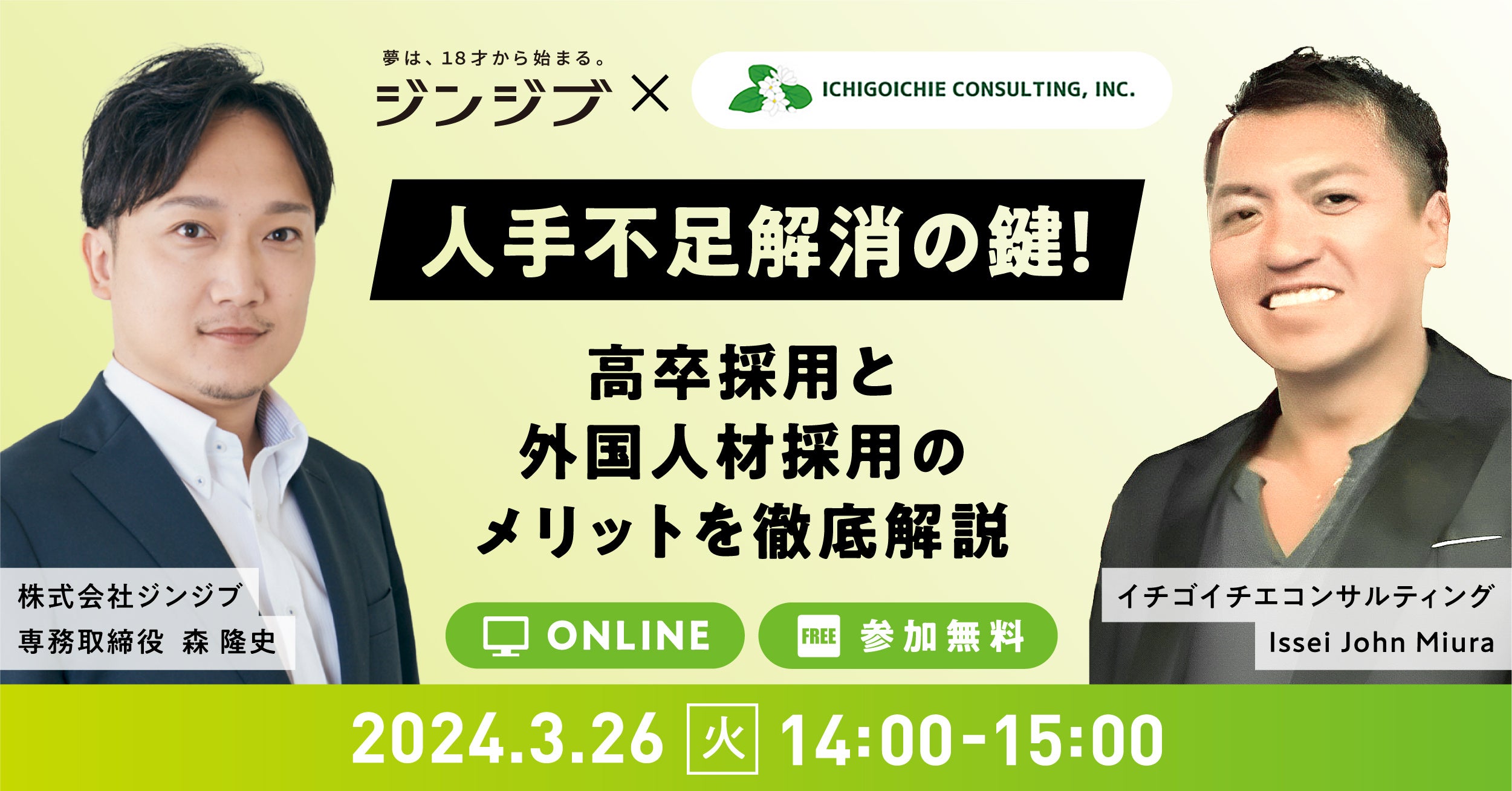 ≪3/26開催≫人手不足解消の鍵!~人材確保の最新トレンド 高卒採用と外国人採用のメリットを徹底解説~
