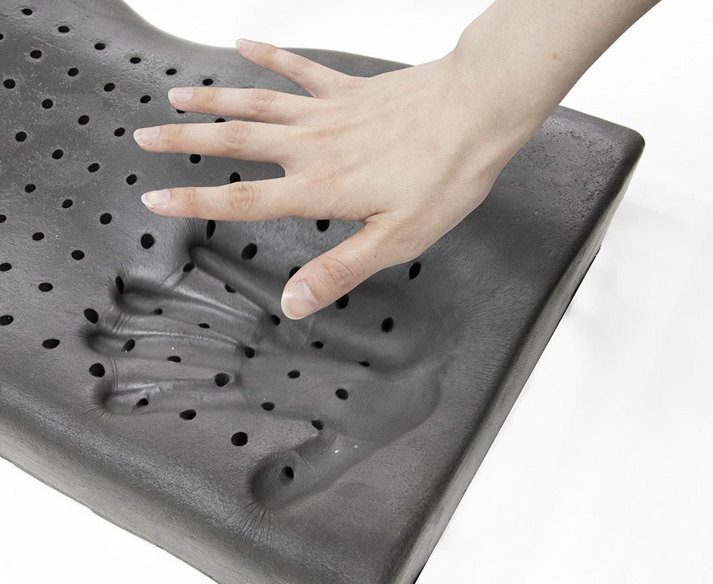 新感触のやわらかな低反発素材が頭の形状や重さに合わせて、程よく沈み込みます(ヘッドホール)