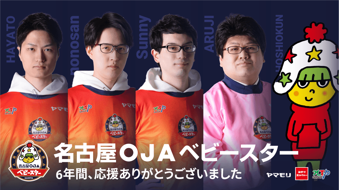 また、当選者様の発表及び、限定動画の内容は、2024年5月10日19:00開始の「ありがとう名古屋OJA ベビースター!! 最後の雄姿を見届けよ」内にて発表いたします。皆様のご応募お待ちしております。