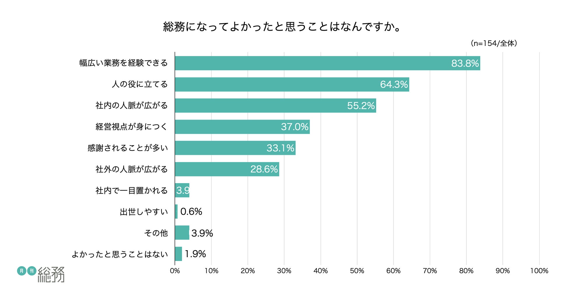 - 総務になってよかったこと1位「幅広い業務を経験できる」2位「人の役に立てる」3位「社内の人脈が広がる」