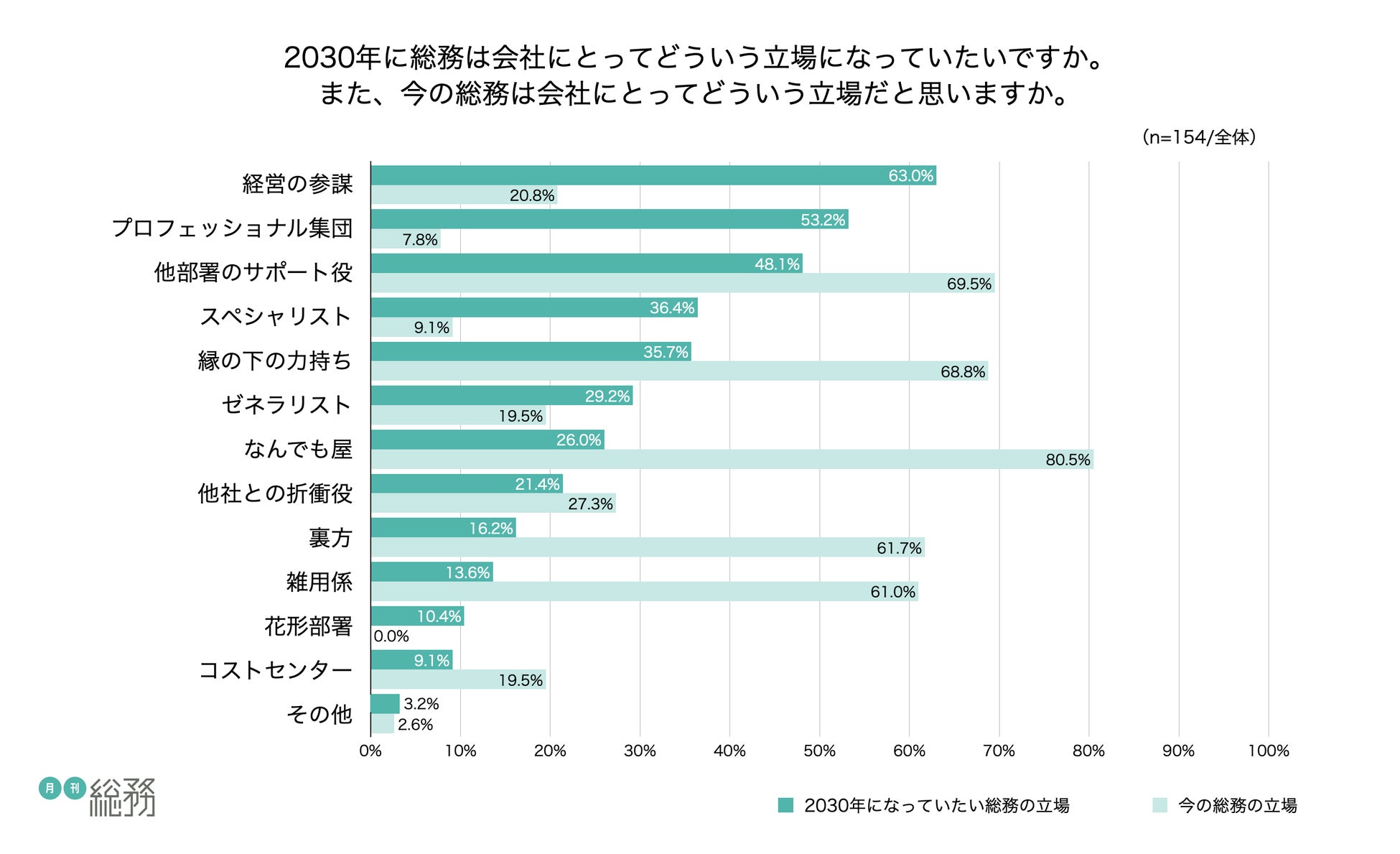 日本で唯一の総務専門誌『月刊総務』を発行する株式会社月刊総務(所在地:東京都千代田区、代表取締役:豊田健一)は、全国の総務担当者を対象に「2023年の総務についての調査」を実施し、154名から回答を得ました。