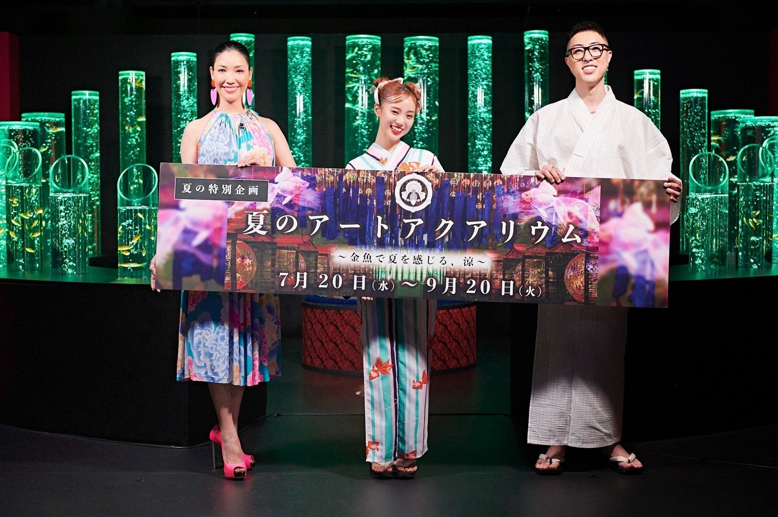 7月19日に開催した夏の企画展「夏のアートアクアリウム~金魚で夏を感じる、涼~」の開催記念イベントに、アン ミカさんと中町綾さん、中町JPさんにお越しいただきました。トークセッションではみなさんが印象に残った、アートアクアリウム美術館 GINZAの魅力についてお話していただきました。