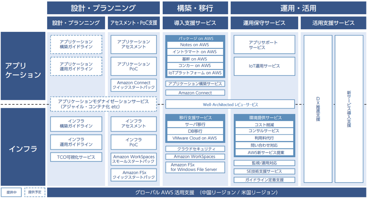 情報系・基幹系などを問わず、全てのシステムについてのAWSの設計から導入・移行、運用。そして最新サービスの活用支援まで対応。