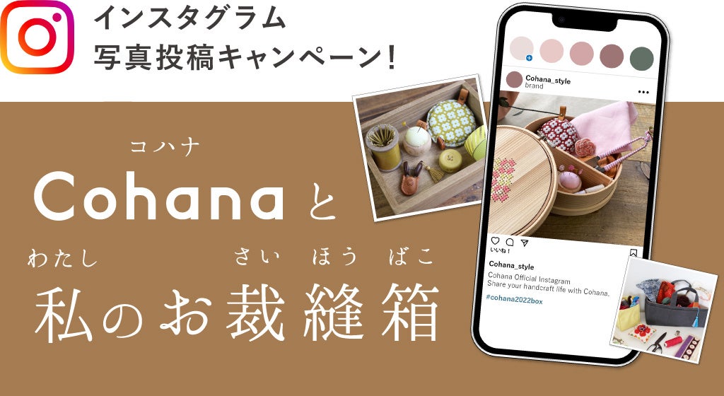 【Cohana】インスタグラム写真投稿キャンペーン「Cohanaと私のお裁縫箱」開催のお知らせ(2022年5月20日~6月30日)