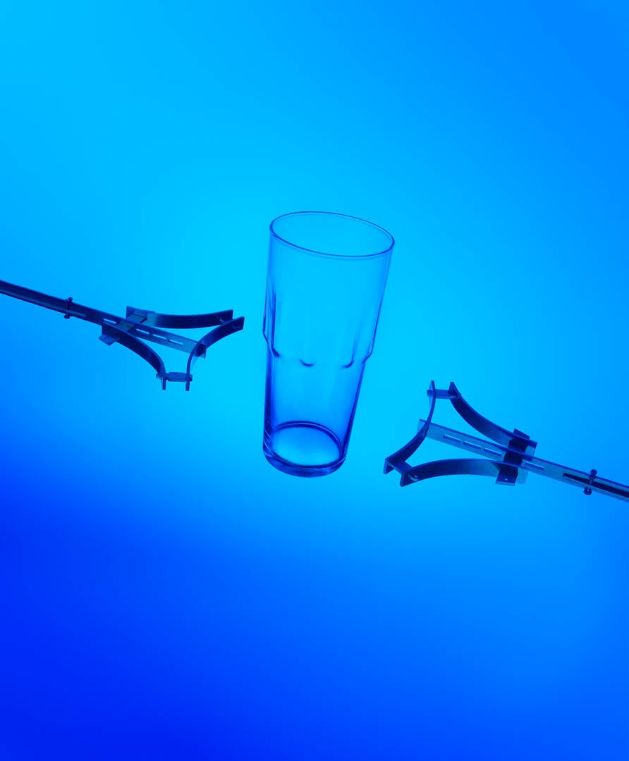 「私たちは、未来を感じさせるモダンなデザインを目指しました」と、イッタラのデザイン開発リード、ハッリ・コスキネンは語ります。「マウスブローのアイテムは、なめらかで流れるようなフォルムが特徴で、先進的なデザインでありながら、フィンランド の工場で伝統的な技法を使って作られています。ガラスのカーブと光の反射が、未来的な美しさを演出しつつ、日常使いのしやすさも兼ね備えているのです。」