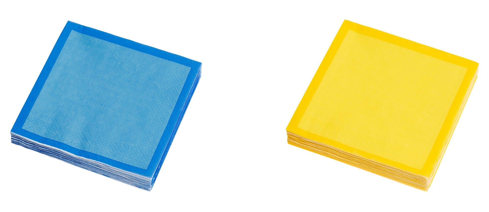(右)ソラーレ ペーパーナプキン ファイヤーイエロー・イエロー 税抜¥1,000/ 税込¥1,100