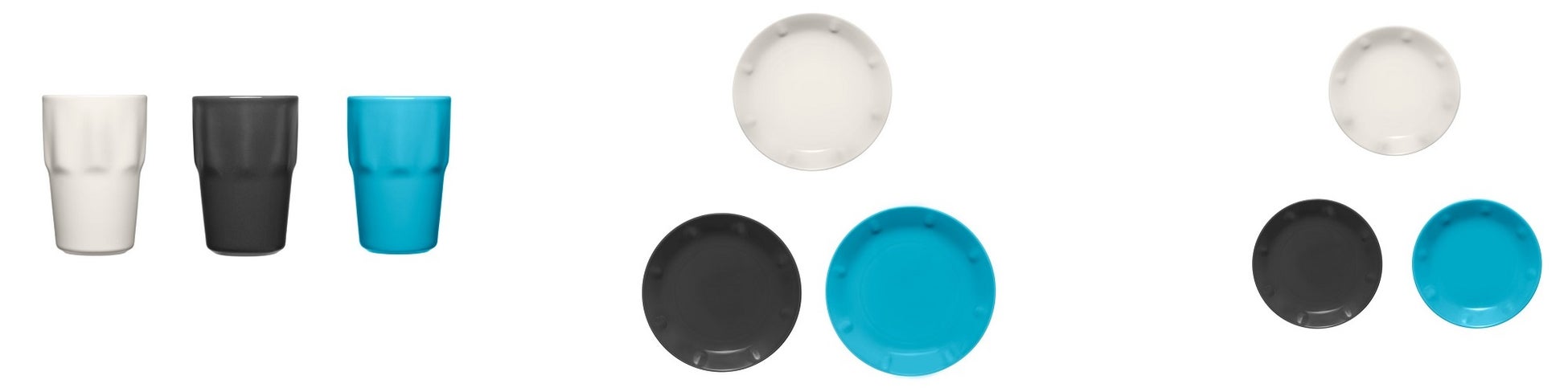 (右)ソラーレ プレート 18cm ホワイト / スチールグレー/ エレクトリックブルー 税抜¥3,000/ 税込¥3,300