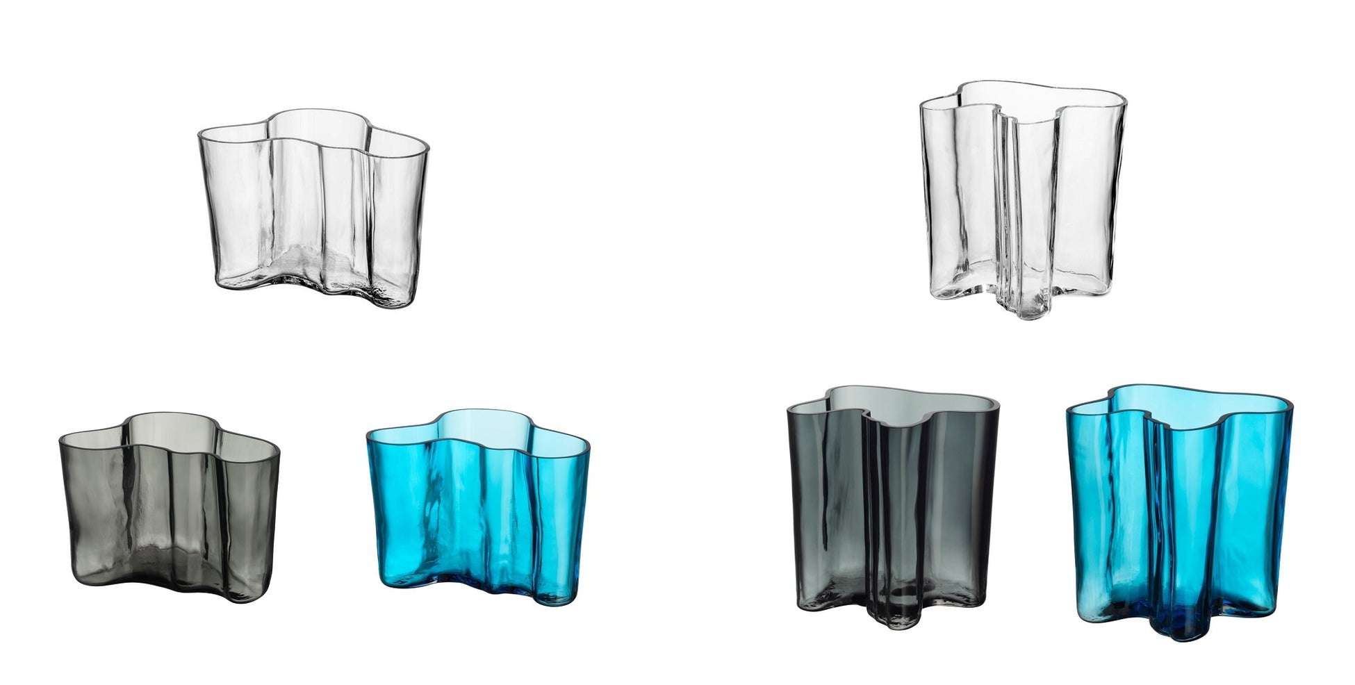 (右)アルヴァ・アアルトコレクション ベース 200mm (木型使用) クリア / ダークグレー / ターコイズ 税抜¥75,000/ 税込¥82,500