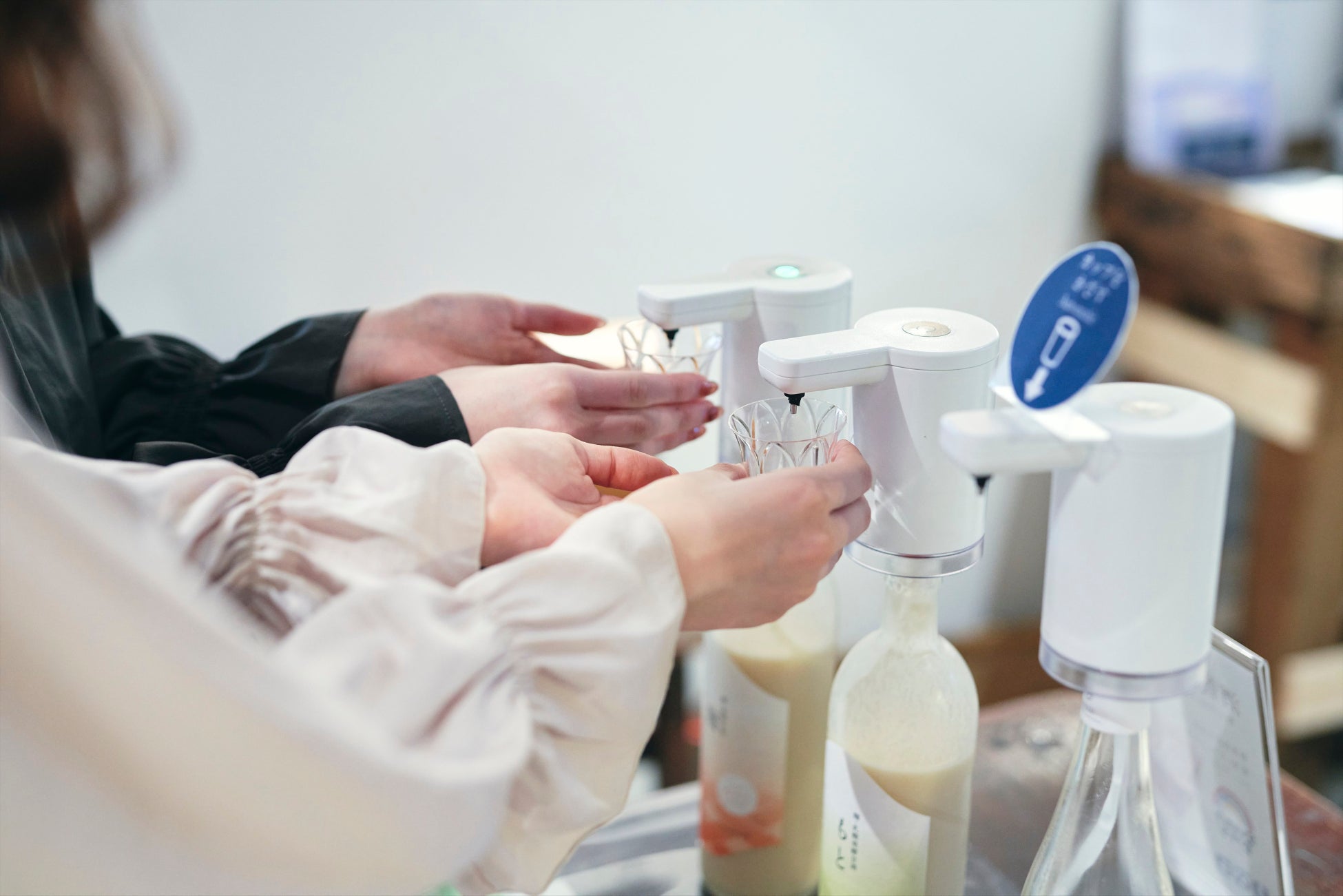 見学後のお楽しみはなんといっても大好評の地酒テイスティング!季節のお酒の無料試飲ができるほか、プレミアムテイスティング(有料)では常時10種類以上の日本酒をお楽しみいただけます。お子様やお酒が苦手な方にも嬉しいノンアルコール甘酒もご用意。