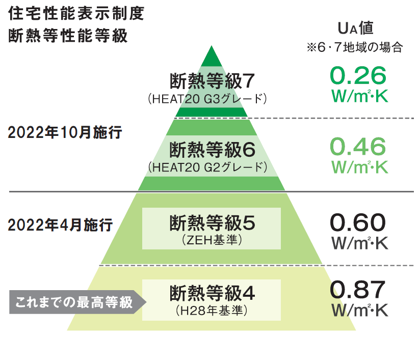 そんな中、今回新設された最高等級である「断熱等級7」は、平成28年省エネルギー基準(※)比で一次エネルギー消費量を概ね40%削減という極めて高い性能が必要になります。今後、日本が目指していく快適性と省エネ性を兼ね備えた、新築住宅の断熱性能指標となることが予想されています。