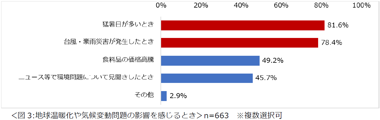 地球温暖化や気候変動問題の影響を感じるのは「猛暑日が多いとき」。