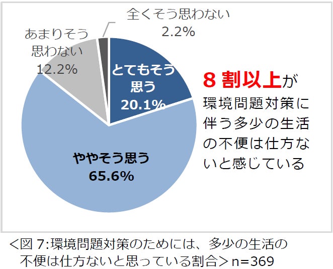 一方で、環境問題対策のためなら多少の生活の不便は仕方ないと思う人が8割以上。
