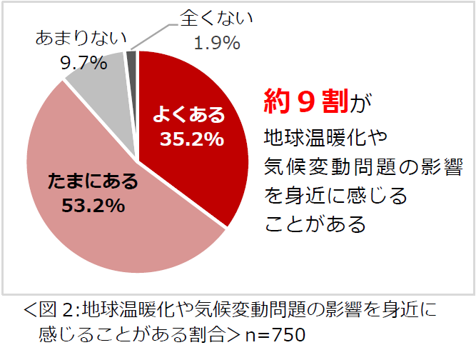 普段、地球温暖化や気候変動問題の影響を身近に感じる人が約9割。