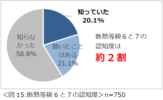 「断熱等級」の認知率は4割以上だが、等級6および7の新設については、認知率が約2割にとどまる。
