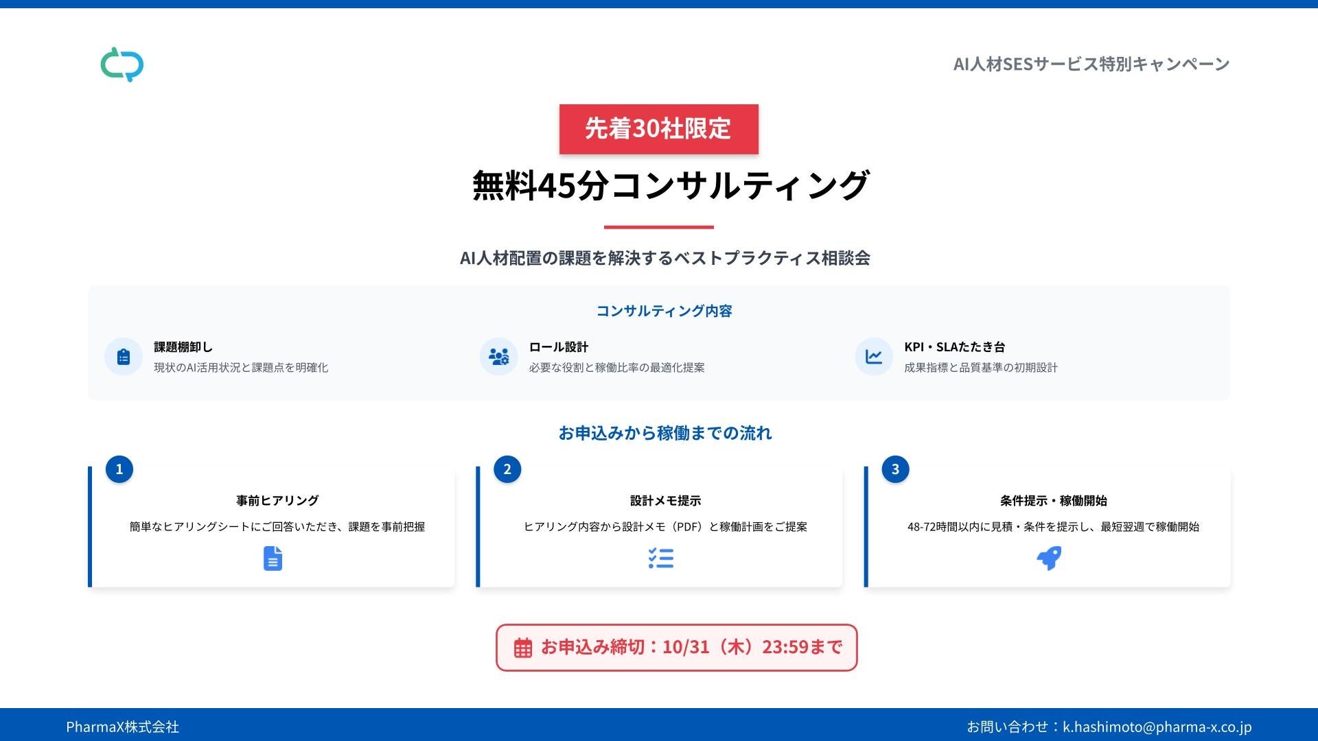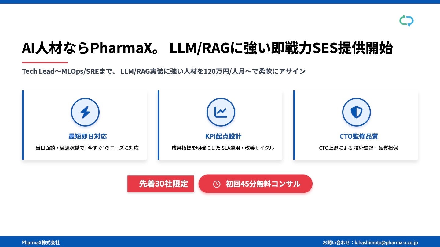 AI人材ならPharmaX。LLM/RAGに強い即戦力SES提供開始|初回45分無料。
