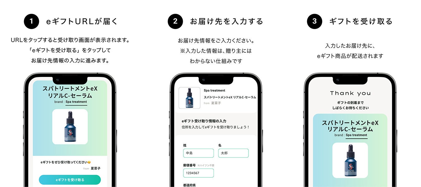住所を知らない相手にもLINEやメールで手軽にプロユースコスメブランド「Spa treatment」の商品をギフトとして贈れることが可能に!