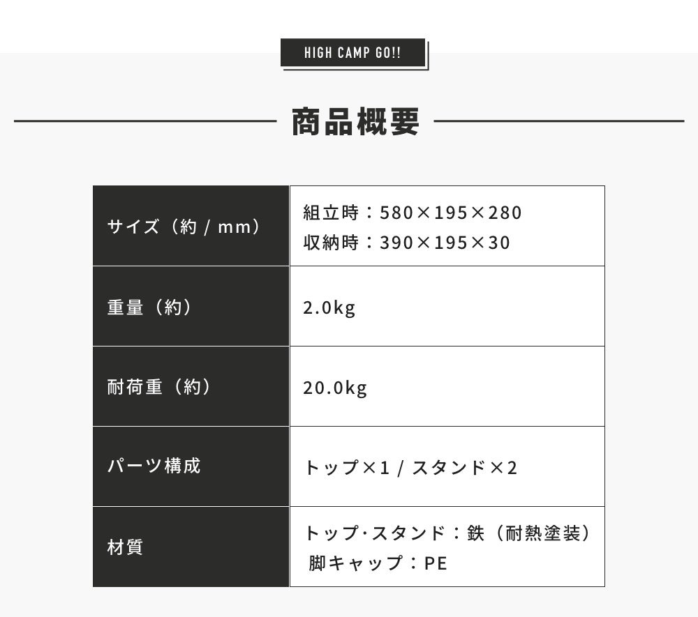 純国産にこだわるソロキャンプブランドHigh Camp Go!!は2022年4月5日より、クラウドファンディングで総額2300万円を超える支援を集め商品化した大人気のロケットストーブ「Bonflame」の専用スタンドとして、またサイドテーブルや五徳としても使えるマルチアイアンスタンド『HCG iron solo stand』の販売を2022年4月5日より開始しました。
