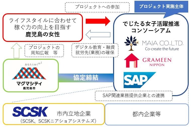 株式会社MAIA(本社:東京都港区、代表取締役:月田 有香、以下「MAIA」)と一般社団法人グラミン日本(所在地:東京都中央区、理事長:百野 公裕、以下「グラミン日本」)、SAPジャパン株式会社(本社:東京都千代田区、代表取締役社長:鈴木 洋史、以下「SAPジャパン」)の3社で構成する「でじたる女子活躍推進コンソーシアム」は、本日9月28日に、鹿児島市(市長:下鶴 隆央)と実証事業「かごしまデジタル女性(おごじょ)プロジェクト」に関し連携協定を締結しましたのでお知らせします。