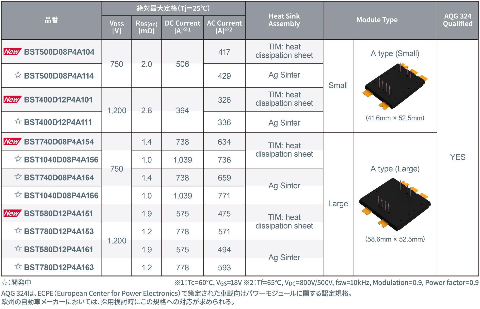 TRCDRIVE pack™は、2024年度中にパッケージサイズ(Small / Large)と実装パターン(TIM:heat dissipation sheet / Ag Sinter)に対応する12製品をラインアップ展開予定です。さらに、モジュールにヒートシンクを備えた6in1の製品も開発中であり、設計仕様に応じた迅速なトラクションインバータ設計やモデル展開に貢献します。