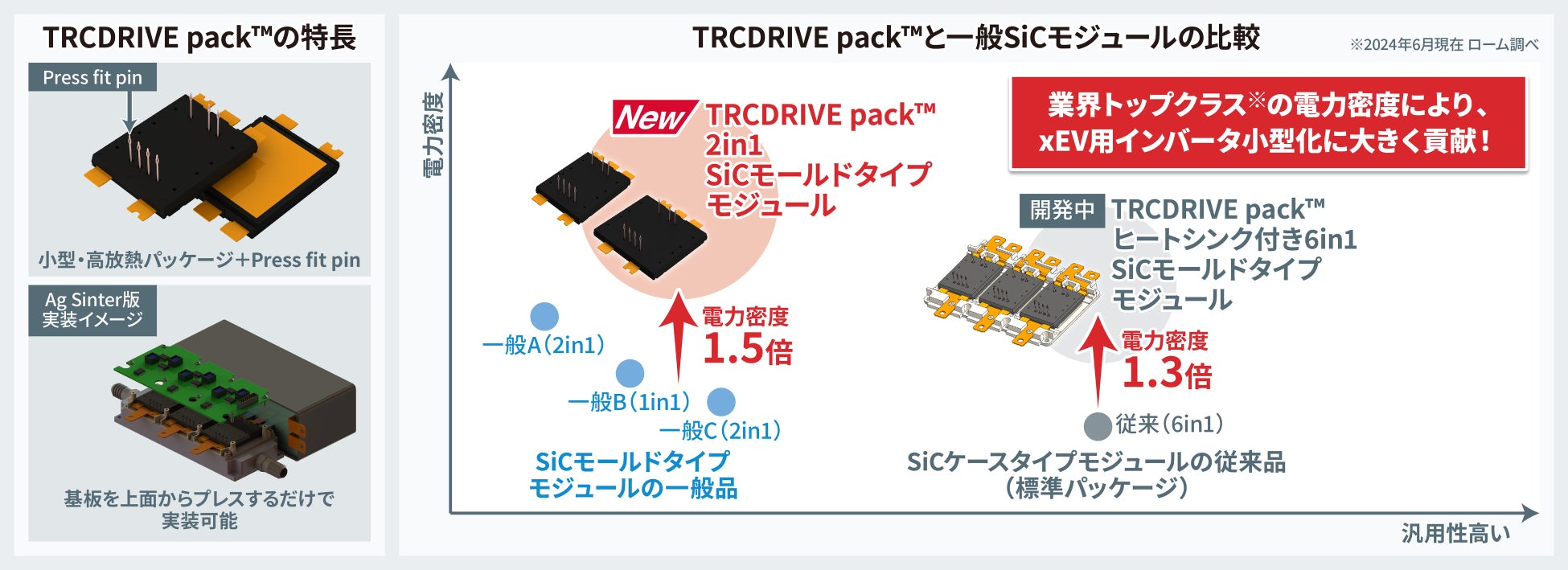 xEV用インバータの小型化に大きく貢献!2in1 SiCモールドタイプ新型モジュール「TRCDRIVE pack™」を開発