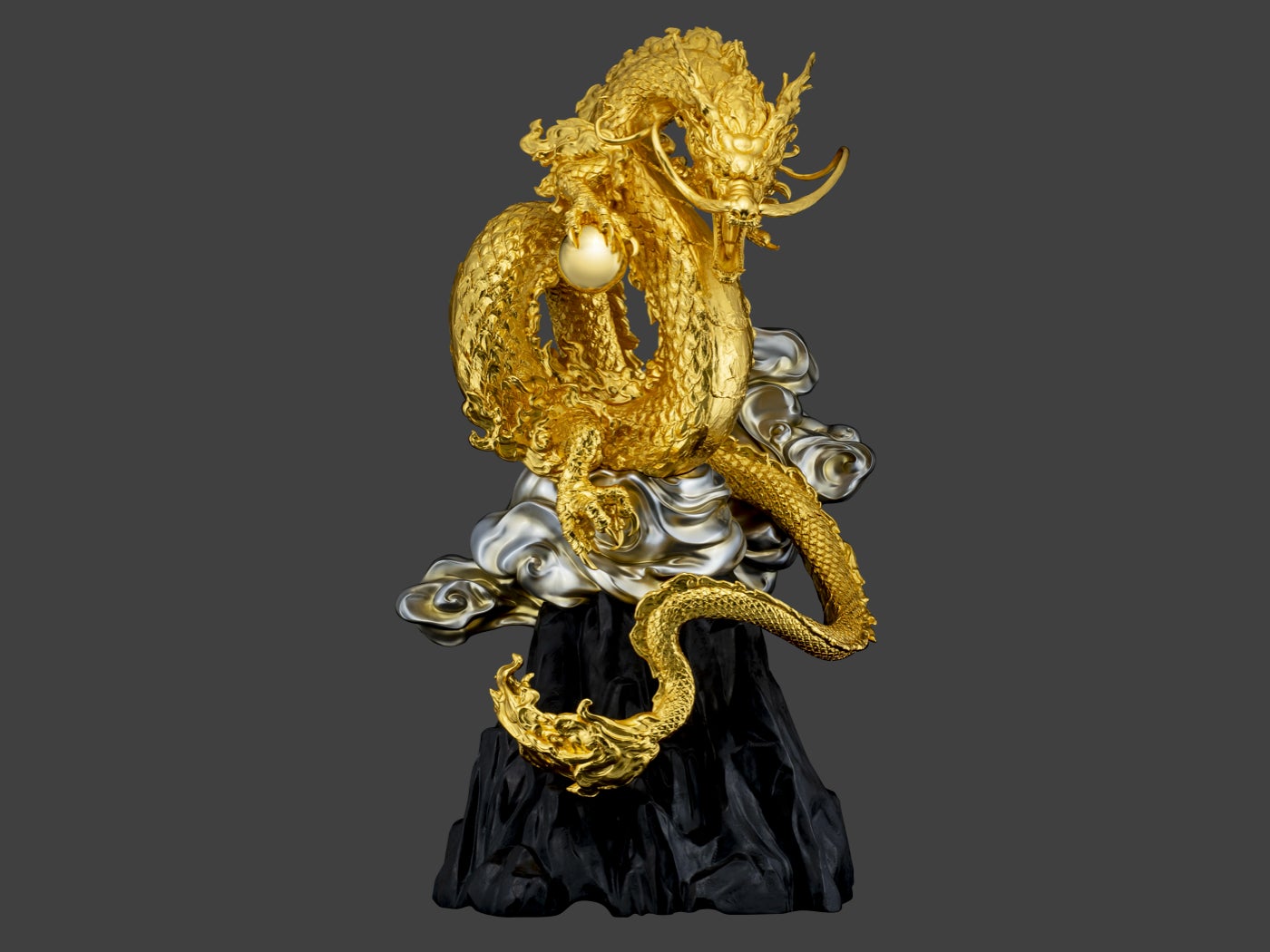 今回、特別展示するのは、古来より運気上昇、開運招福、立身出世のお守りとして親しまれていて、今年の干支である辰にちなんだ高さ約2.1mの「黄金の龍」。金箔を約3,000枚使用して金工作家が製作した大迫力の金工芸品で、参考価格は3,850万円です。その他にも、純金の龍の置物なども販売します。