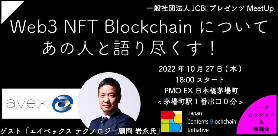 コンテンツ関連企業50社が加入する一般社団法人ジャパン・コンテンツ・ブロックチェーン・イニシアティブ(一般社団法人Japan Contents Blockchain Initiative・略称、一般社団法人JCBI)は、「Web3 NFT Blockchain」をテーマとしたミートアップイベントの定期開催を開始しますのでお知らせします。