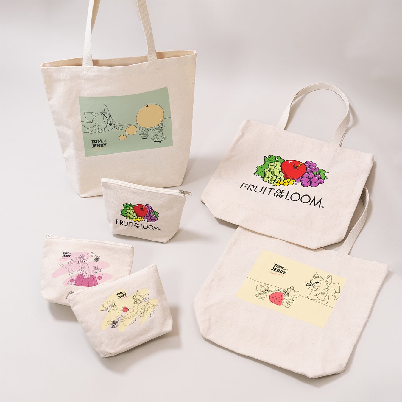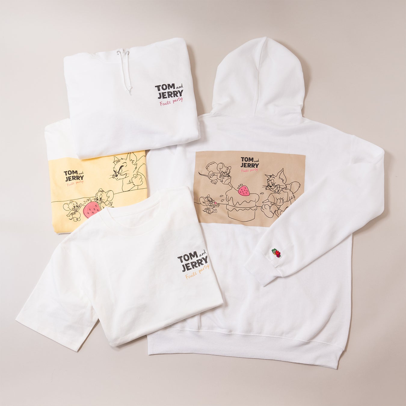 コラボレーションのテーマは「フルーツ」。本コラボレーションのために描かれたオリジナルアートは、いたずら好きなジェリーと食いしん坊のタフィーが大きなフルーツを持っておいかけっこ。最後はトムも一緒にみんなで仲良くフルーツを楽しむ様子をちょっと大人なかわいいテイストで表現しました。「FRUIT OF THE LOOM」と「トムとジェリー」との初めてのコラボ企画。遊び心あるコレクションをぜひご覧ください。