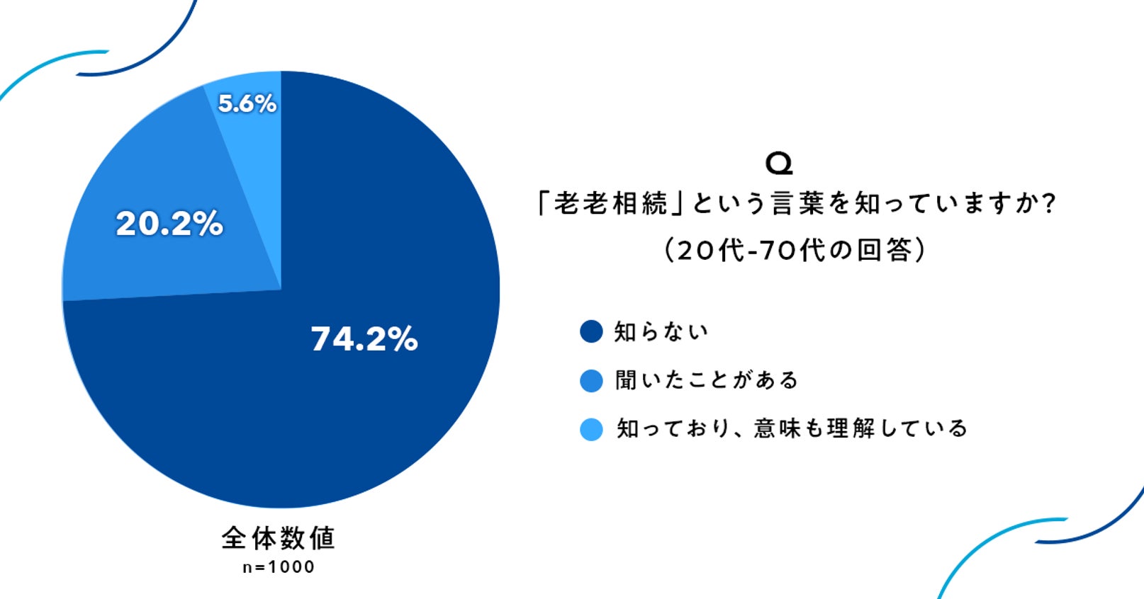 今後、日本が直面すべき課題である老老相続について、2024年調査で初めて調査を実施しました。結果として、74.2%の人が「知らない」と回答するなど、認知度が低い状況であることがわかりました。