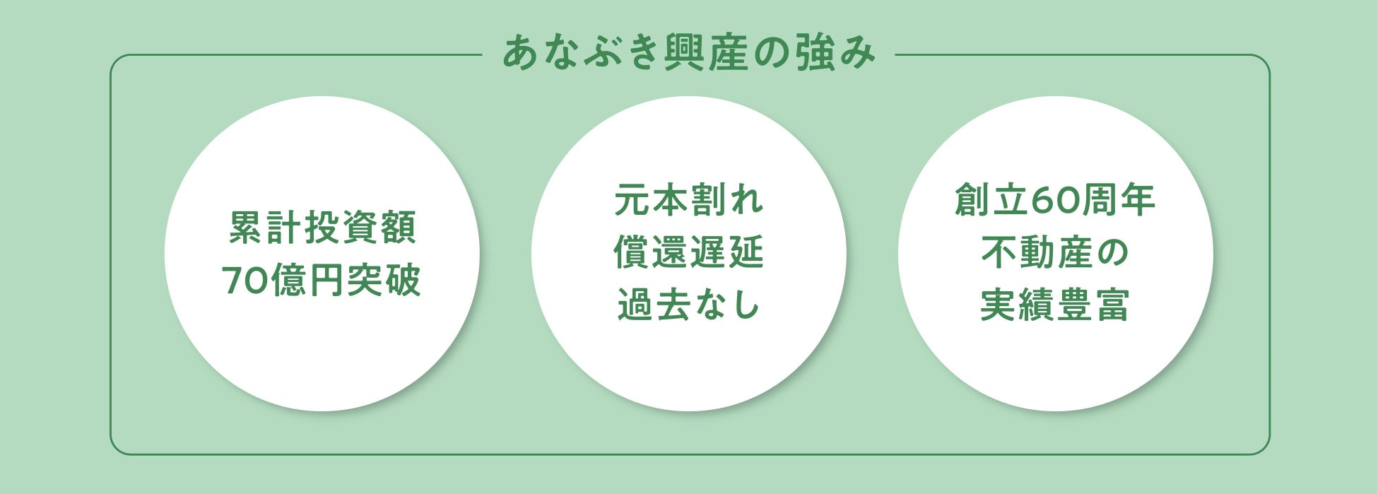 サービス開始から約5年間で30件以上のさまざまファンドを扱ってきましたが、これまで一度も元本割れや配当遅延がなく、投資家の皆様から安心して投資できると大変好評をいただいております。