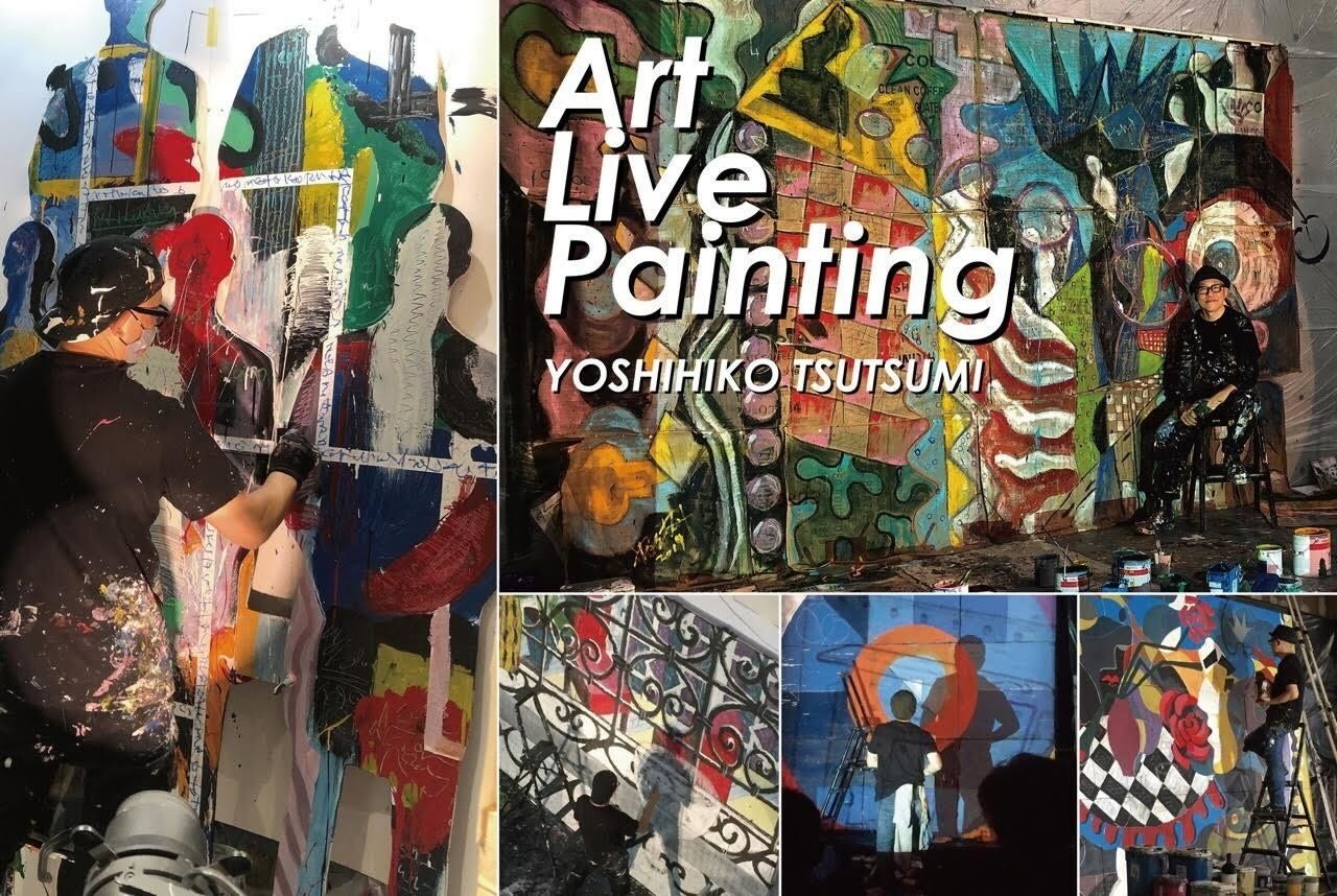 Yoshihiko Tsutsumi Art Live Painting平面、立体、インスタレーションなど、表現の枠にとらわれないアーティストYoshihiko Tsutsumi(つつみよしひこ氏)のスタジオをMarunouchi Antique Marketの会場に再現しての公開ペインティング。