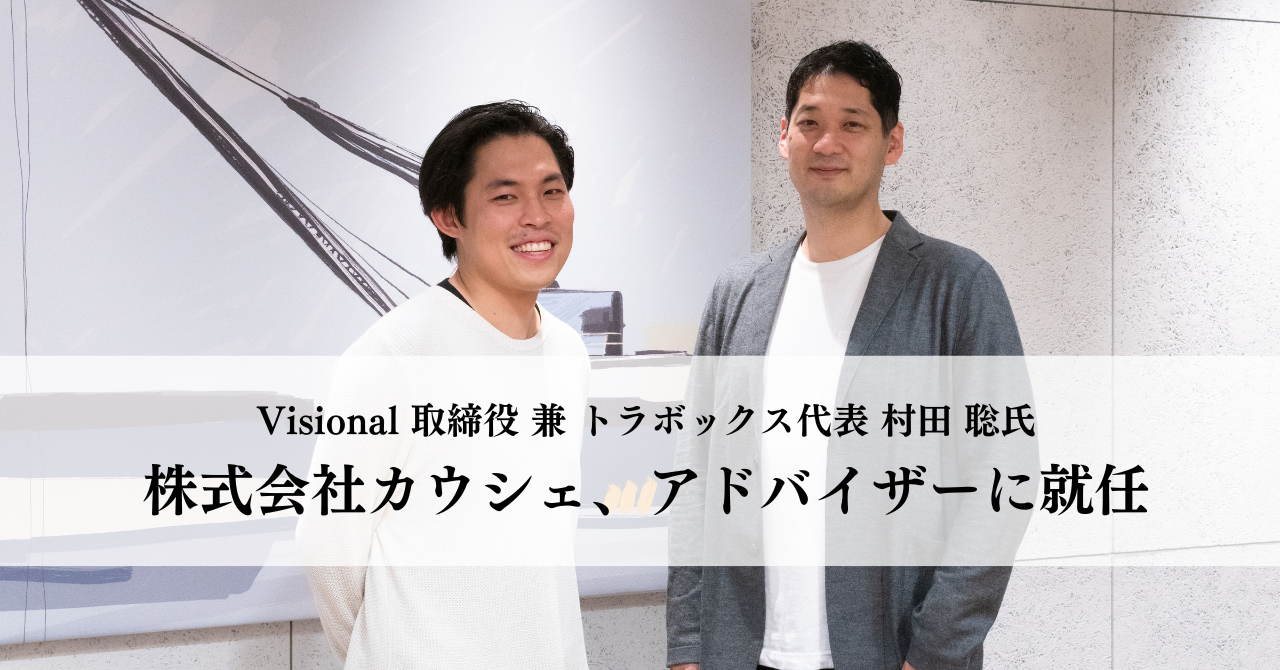 なお本日、村田聡氏とカウシェ代表取締役CEO門奈剣平との対談note「EC業界に風穴を開ける|Visional取締役 村田 x カウシェCEO門奈 対談」を公開いたしました。こちらもあわせてご覧ください。