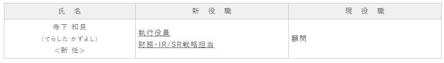 今回の人事では、財務戦略、資本政策、IR/SR機能の強化を目的とし、新任の執行役員を選任します。詳細は以下の通りです。