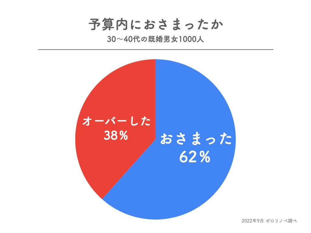 予算内におさまったか、予算をオーバーしたかを聞いたところ、以下の結果となりました。