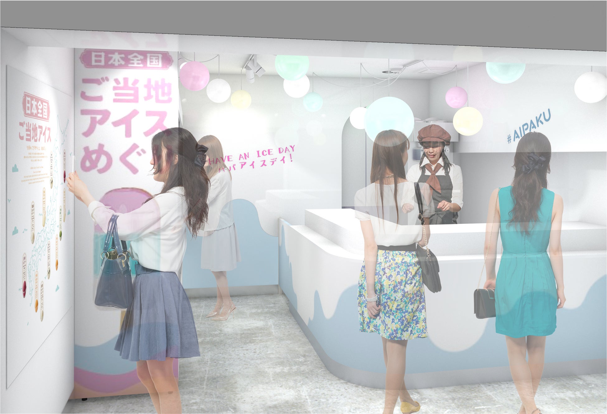 『AIPAKU® TOKYO』原宿店では、日本全国47都道府県から選りすぐりのご当地アイスクリーム約100種類を常時取り揃えます。