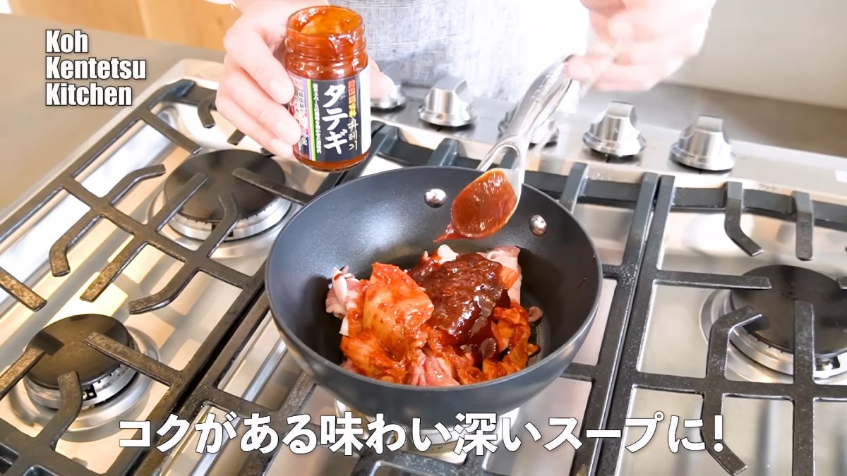 料理研究家コウケンテツさんの大人気YouTubeチャンネルで「タテギ」を使った「豚キムチスンドゥブ」のレシピを公開
