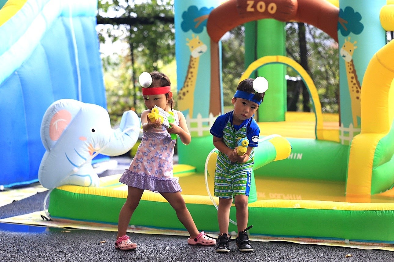 園内、王宮の丘エリアにて、7月19日より「びしょぬれときのすみか」を開催します。昨年も大好評だった「ウォータースライダー」や「ボールプール」などに加え、「パドルボート」や「ラジコンボート」など今年から新しいコンテンツも登場!お子様と一緒に夏の御殿場高原で涼しげなひと時をお楽しみください。