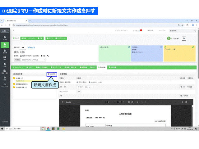 *4 実際に本システムを利用した医師の感想であり、文書半自動生成の所要時間は入院期間等の条件により、数秒で完了する場合もあれば数分を要する場合があります。