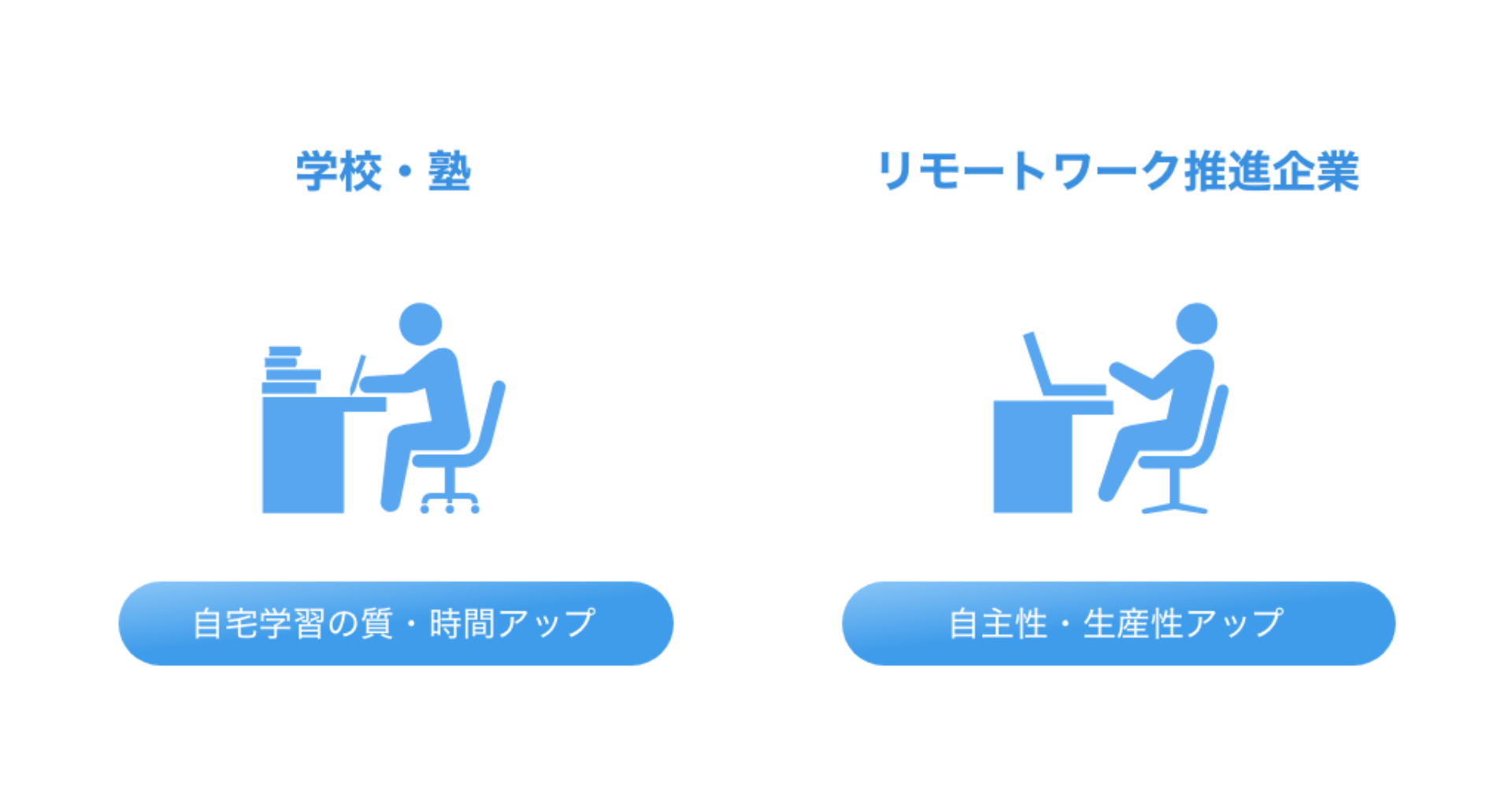 といった悩みを解決するため、学校や塾、リモートワーク推進企業などでの活用が考えられます。