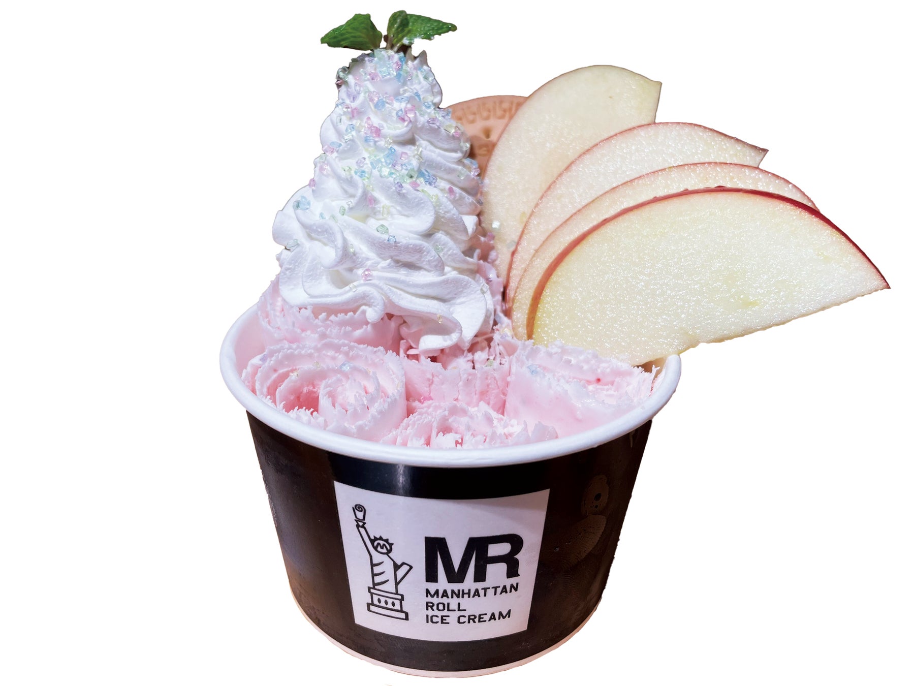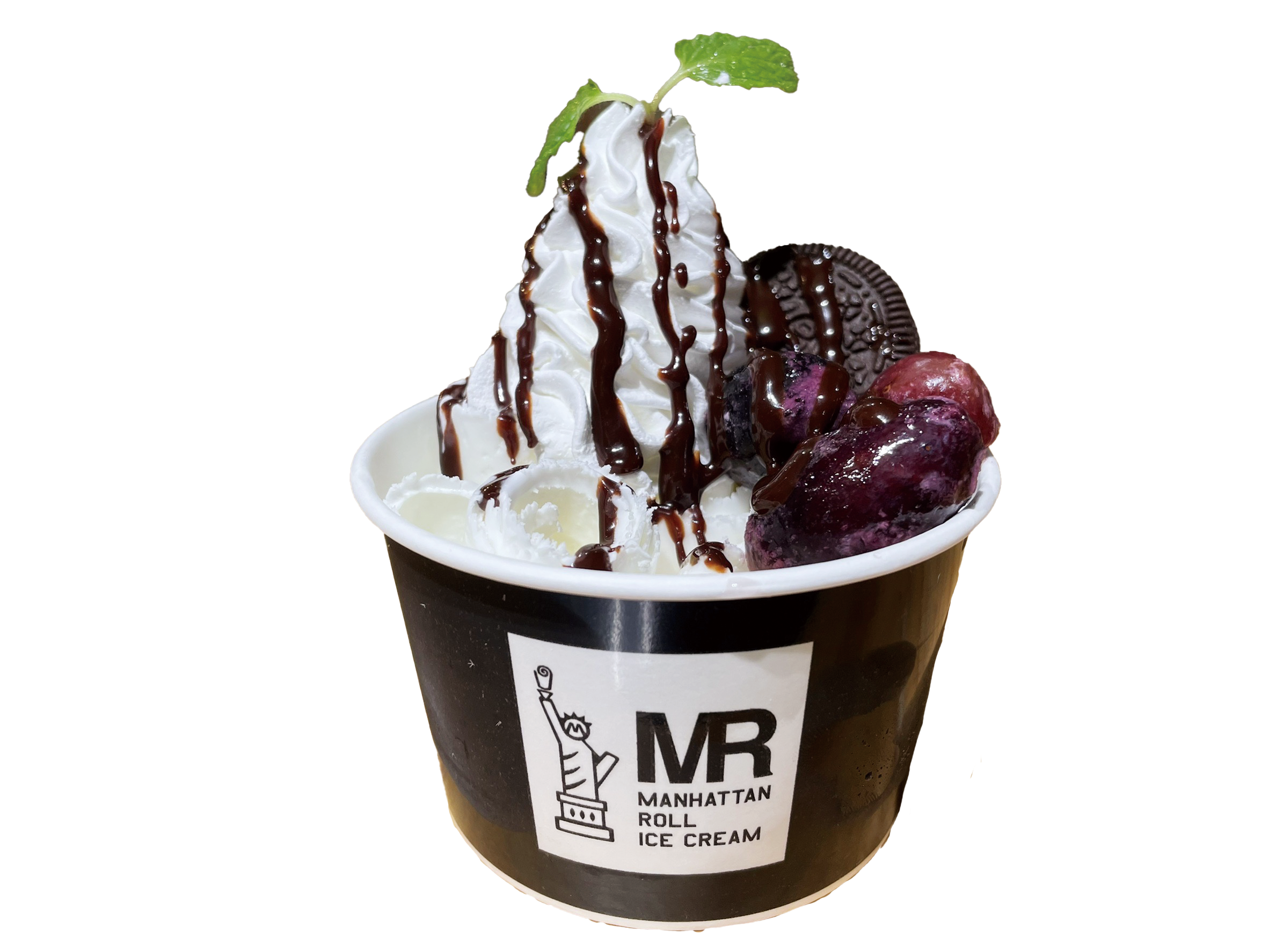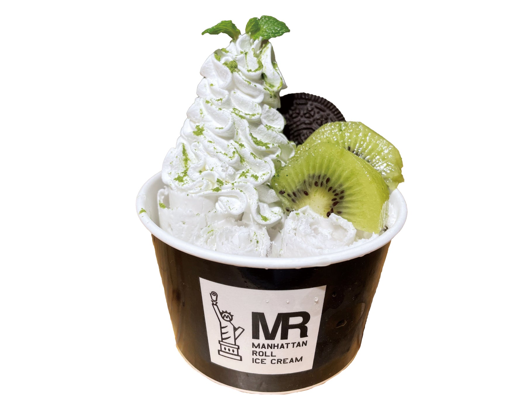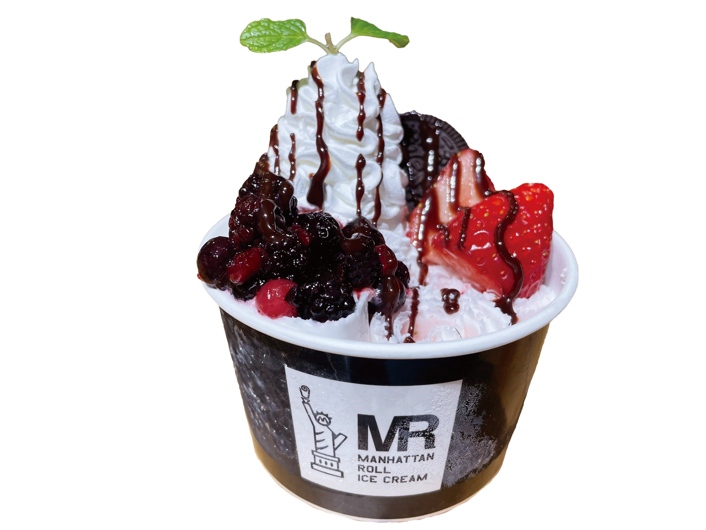 ロールアイスとは、マイナス20度以下のコールドプレートの上に、液状のアイスベースを乗せ、固まったものを薄く伸ばして丸めたアイスの事です。当店では、オリジナルのアイスベースに、様々なフルーツやチョコなどを追加することで、多様なメニューをご用意しております。味のベースとなるアイスにもこだわり、一般的なアイスに使われている卵を使用せず、店舗にて牛乳、生クリーム、シロップを独自の配合で合わせる事で、滑らかで濃厚なのに、甘すぎないアイスクリームを実現。またトッピングやアイスのベースには、フレッシュフルーツ(冷凍ではないもの)を使用する等、見るだけでなく味でもしっかり満足して頂けます。