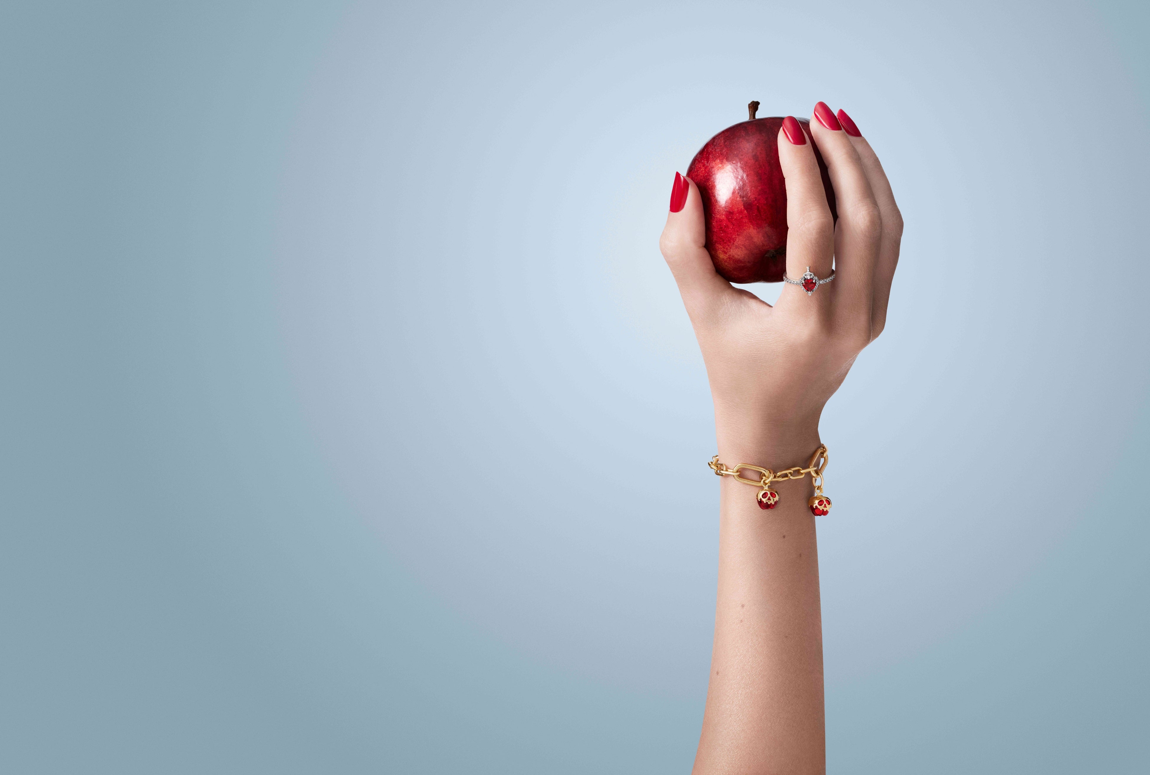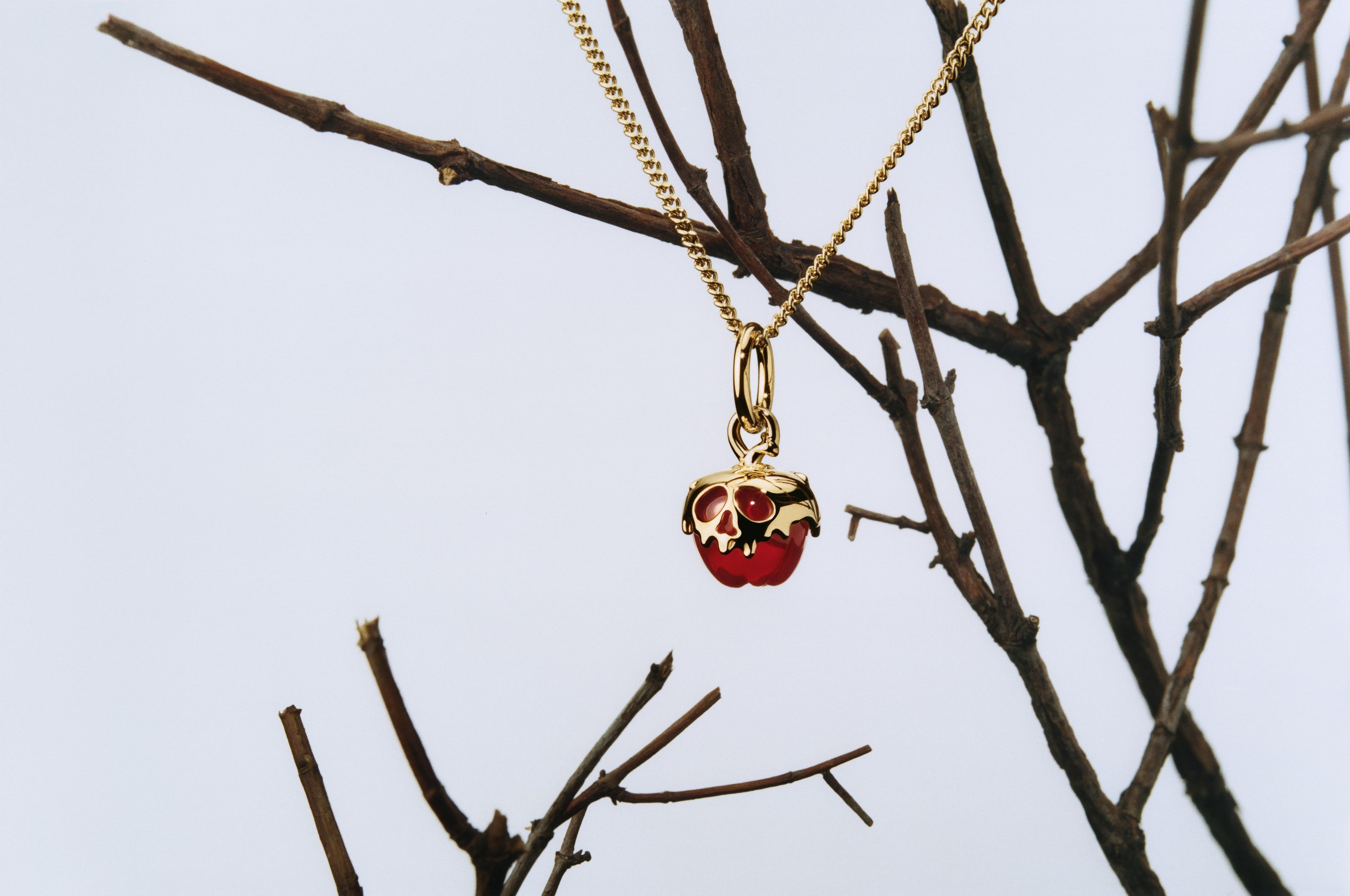 特に注目すべきアイテムとして、「ディズニーヴィランズ・邪悪な女王」インスパイアのリングや毒林檎の形をしたチャーム、「シンデレラ」モチーフのリングやガラスの靴のチャームが登場。ディズニー・アニメーション映画『シンデレラ』の75周年を祝うのにぴったりなアイテムです。