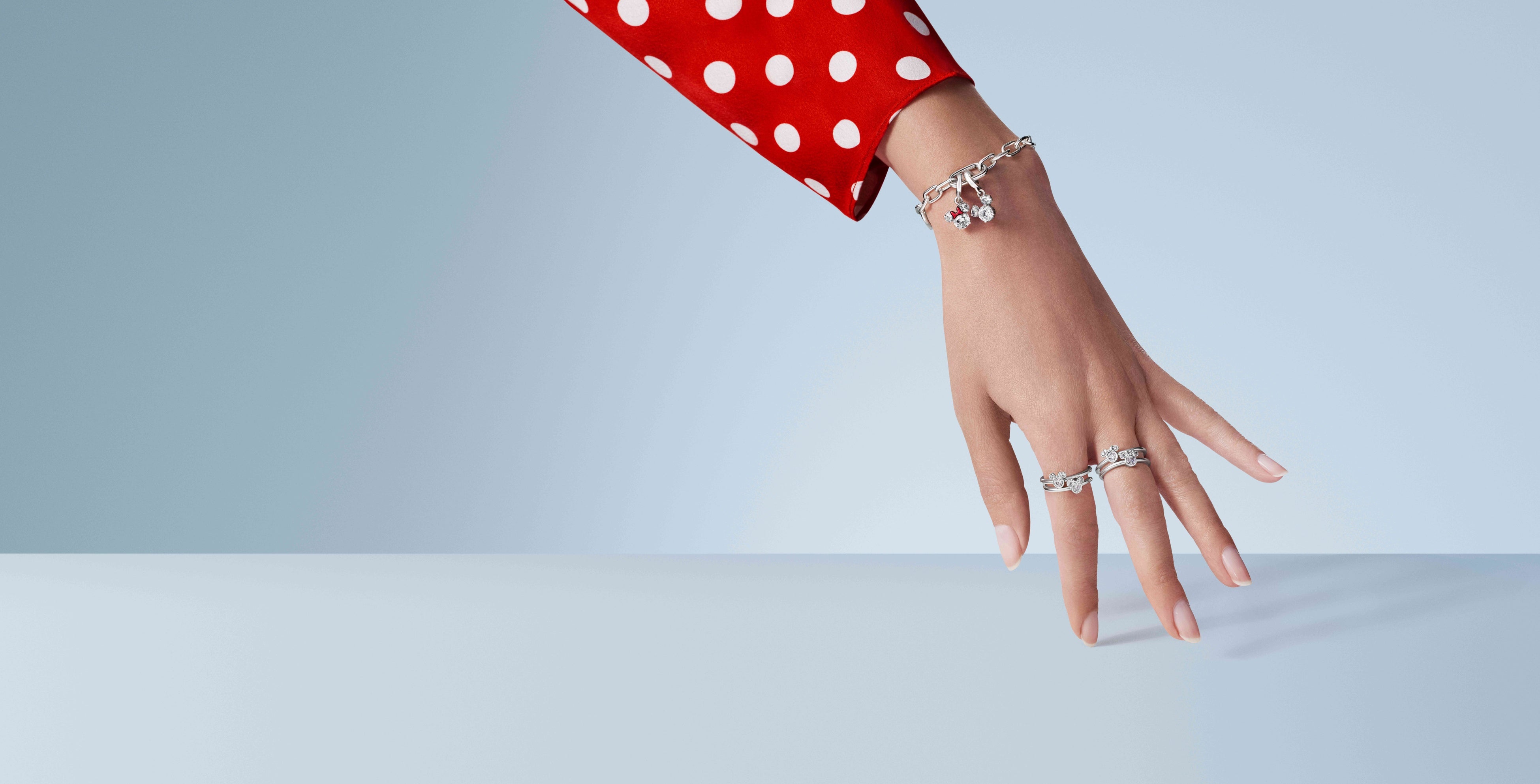 人気映画『リロ&スティッチ』をテーマにした茶目っ気たっぷりなスティッチのチャームや、ディズニー/ピクサー アニメーション作品『カールじいさんの空飛ぶ家』をイメージしたバルーンのチャームもラインナップし、ディズニーやピクサーのアニメーション映画ならではの感動的なストーリーをジュエリーに込めています。